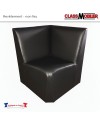 Chauffeuse d'angle professionnelle à 90° et hauteur 80 cm, idéale pour optimiser l'espace dans les ERP (discothèques, clubs, bars, hôtel et restaurants). Revêtement en simili cuir noir grainé, robuste et facile d'entretien. Conforme aux normes de sécurité avec la certification Non Feu M2. Parfaite pour créer des banquettes d'angle sur mesure.