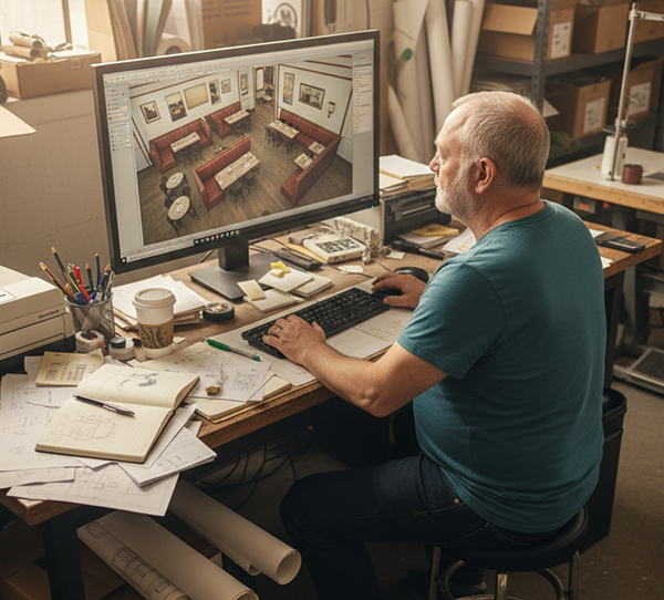 Pensé pour les établissements CHR et ERP, l’accompagnement sur-mesure de Class Mobilier intervient en amont pour vous aider à concevoir et structurer les espaces, le mobilier et l’organisation du lieu, en fonction de vos usages et de vos contraintes.