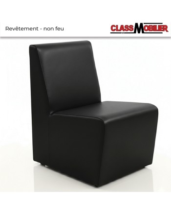 La priorité a été donnée à la sécurité. Le revêtement en simili cuir de haute qualité répond à la norme de classement au feu M2, indispensable pour l'équipement des Établissements Recevant du Public (ERP). Ce choix de matière garantit également une grande facilité de nettoyage et une excellente résistance à l'usure intensive.
