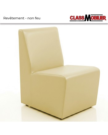 La priorité a été donnée à la sécurité. Le revêtement en simili cuir de haute qualité répond à la norme de classement au feu M2, indispensable pour l'équipement des Établissements Recevant du Public (ERP). Ce choix de matière garantit également une grande facilité de nettoyage et une excellente résistance à l'usure intensive.