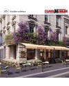 La table Orsay se distingue par son piétement en fonte d'acier robuste équipé d'un mécanisme basculant (pliable). Grâce à cette fonctionnalité, les tables peuvent être encastrées les unes dans les autres, facilitant ainsi le nettoyage de vos terrasses et le stockage en fin de service.